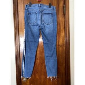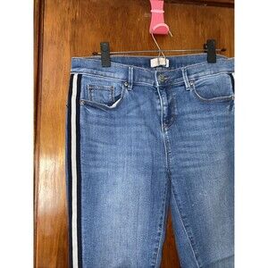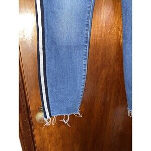 Loft Jeans Blue Side Stripe Slim Pocket Denim Modern Skinny Size 28 6 Raw Hem