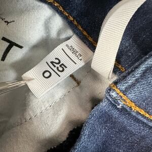 The Loft Jeans in blue are designed for women in size 25/0. These high-rise, modern skinny jeans feature distressed detailing, a cropped length, and a raw hem, offering a chic and stylish option for casual and trendy outfits.