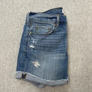 Loft Jeans Short WMNS 25 Mid-Rise Medium Wash Blue Rolled Hem Distressed Denim