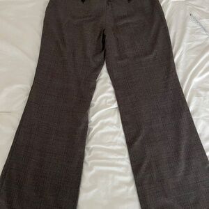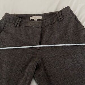 One pair of brown plaid Loft pants in Julie fit. Size 6p petite. Good used condition. Faint hints of red and gold in pattern, perfect for fall. Functional small front and back pockets. One clip closure came loose and I repaired by hand, still functional.