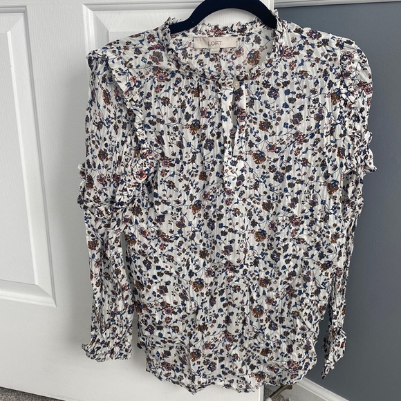 Excellent condition Loft top with keyhole and ruffle sleeves