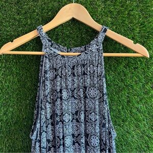 Listing is for a Loft size L black and white knit halter neck tank top with a fun kind of mandala pattern! Back has a keyhole with button closure.