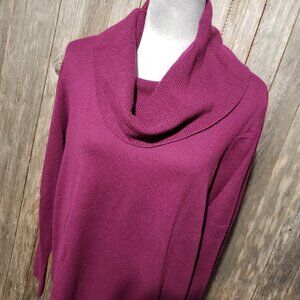 Loft L Tunic Sweater Women's Purple Cowl Neck Lightweight Stretch Fuchsia