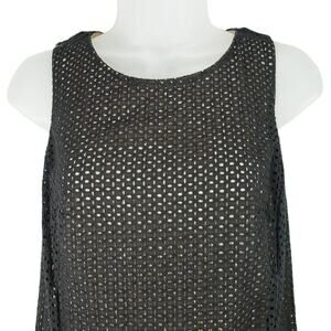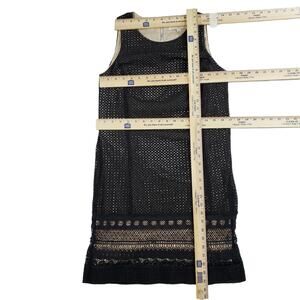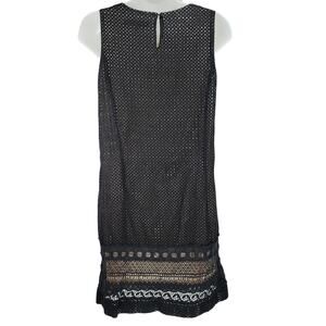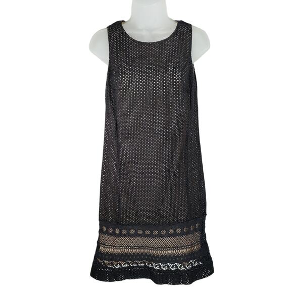 Loft Lace Mini Shift Dress 8P Women Black Tan Overlay Perforated Side Zip