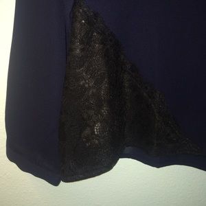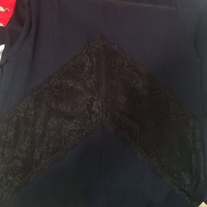 This is so cute! Navy blue & black. The only reason I edited cover photo is because I wanted the lace to show. It has lace detail on bottom and across the back of shirt. Never been worn but is perfect with jeans and booties! Size medium.