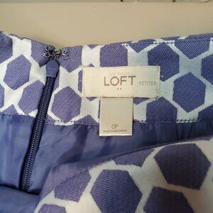 This Loft mini skirt is an excellent addition to any closet! Two button feature with Lavender & Off white Geometric Print. In good condition: no rips, no tears or stains.