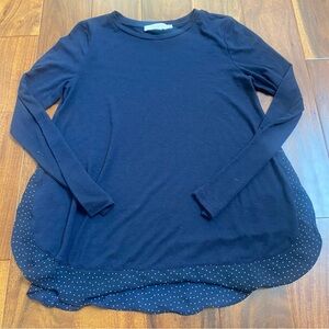 Loft Layer Look Sweater Women's Navy Small Top Contrast Shirttail Long Sleeve