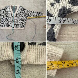 Loft Leopard Print Cardigan Sweater Size Large Gray Cream Cotton Chic Neutral