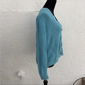 Loft Light Blue Button Down Knit Cardigan Sweater Women’s Size Large Soft Casual