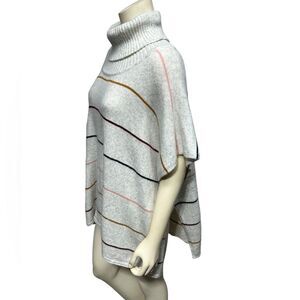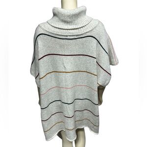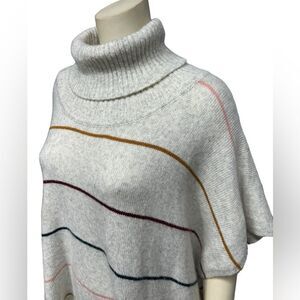Loft Light Gray Poncho Sweater Short Sleeve Turtleneck Shrug Colorful Stripes