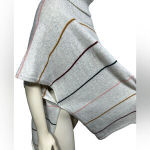 Loft Light Gray Poncho Sweater Short Sleeve Turtleneck Shrug Colorful Stripes Fall