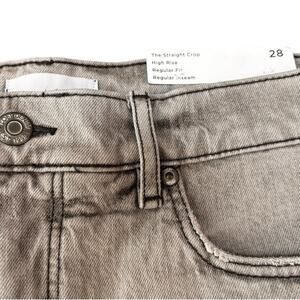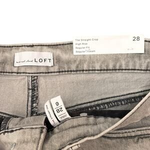 Loft Light Gray Wash Distressed Raw Hem Straight Cropped High Rise Jeans 28/6