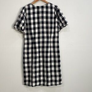 Loft Line Rayon Blend Dress Checkered Short Sleeve V-neck Women's 8 Black White