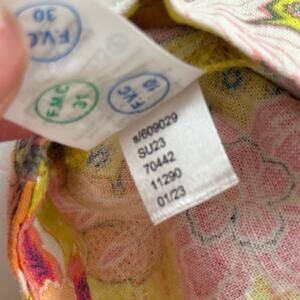 Loft Linen Artsy Yellow Floral Puff Sleeve Top Large Square Neck Boho Vacation
