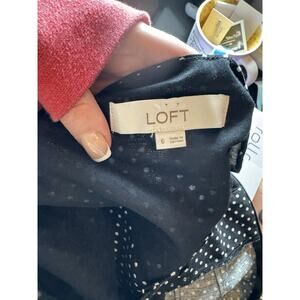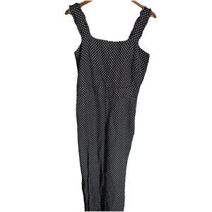 This stylish romper from LOFT is perfect for the spring season. Made from comfortable linen material, it features a black color with white polka dots, creating a chic and timeless look. The one-piece is a size 6 and is designed for regular size women, offering a comfortable and relaxed fit.