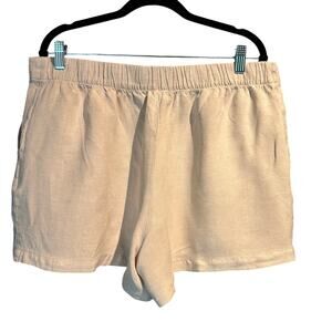 Loft Linen Blend Light Khaki Pull On Shorts Micro Mini Short Size XL Pockets