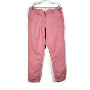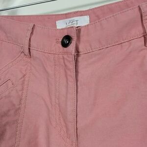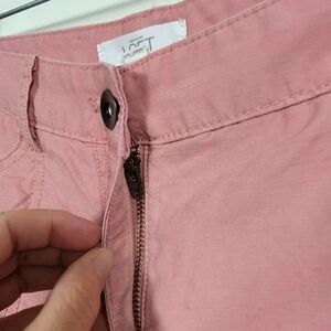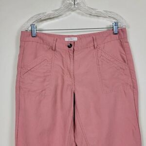 Loft Women's Linen Blend Pants, peach/guava color, long pants, front and back pockets, 53% linen 47% cotton, button, and zipper closure, boho, casual. Preloved, no flaws, great conditions.