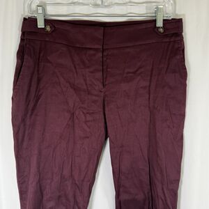 Loft Linen Blend Pants Women's 6P Petite Burgundy Mid Rise Lightweight