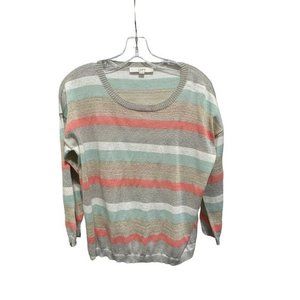 LOFT Metallic Stripe Sweater Linen Blend Coral Beige Gray White Aqua Size M