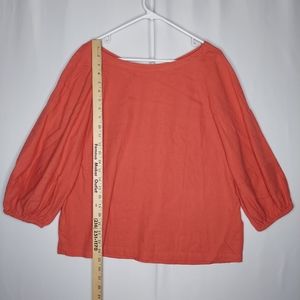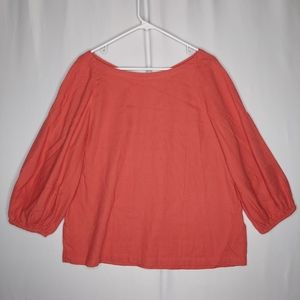Loft Linen Blend Top Women Large Peasant 3/4 Bishop Sleeve Boho Minimalist Coral