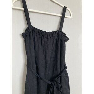 Loft Linen Blend Wide Leg Jumpsuit MEDIUM Black One Piece Minimalist