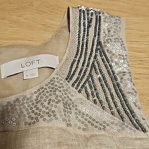 Loft Linen Sequins Sheath Dress in Taupe Sleeveless Women's size 8
