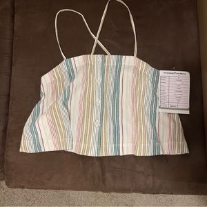 Sample matching cropped cami and shorts set by Loft. Cream color with stripes. 100% cotton, feels like linen. Both size medium.