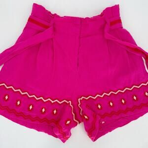 Loft Linen XS Embroidered Shorts Pockets High Rise Paperbag Summer Resort Beach