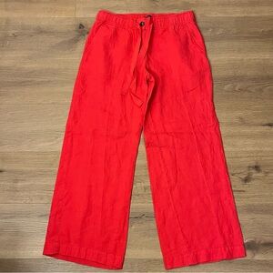 Loft | Linen red tie waist pants/trousers Wide Leg women’s size S high rise