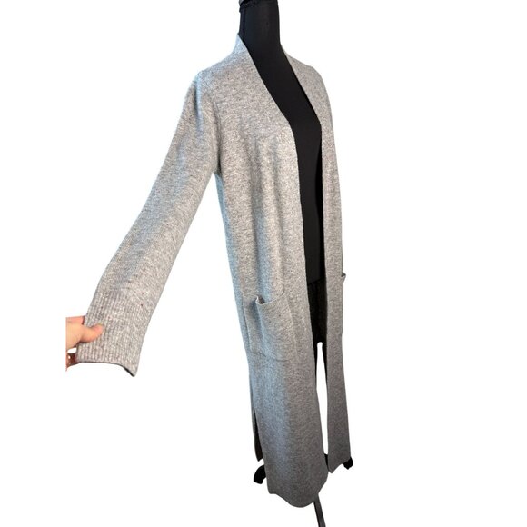 Loft Long Duster Coatigan NWT Open Front Pockets Rainbow Speckled Gray Size M