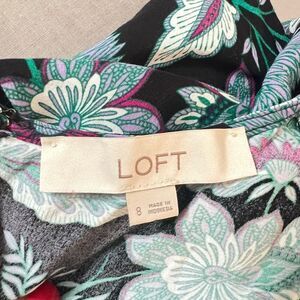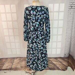 Loft Multicolor Long Puff Sleeve Front Slit Floral V-Neck Midi Dress Size 8