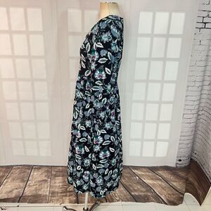 Loft Long Puff Sleeve Front Slit Floral V-Neck Midi Dress Size 8