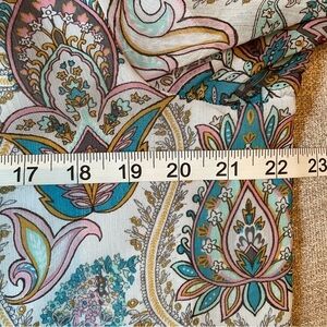 Loft Long Sleeve Blue White Pink Paisley Tie Neck Ruffle Boho Lined Blouse Top