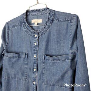 Loft Long Sleeve Button Down Ruffle Band Denim Top Size XS