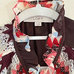 Loft Long Sleeve Quilt Like Pattern Blouse Sheer with Lining Size Small