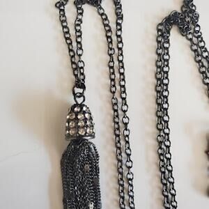 Loft Long Tassel Necklace Black Chain with Rhinestone Accents