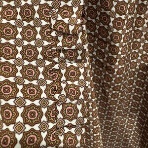 Loft Long-Sleeve Top Brown with Cream & Pink Design EUC
