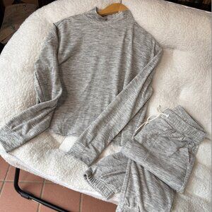 Gray mock turtle neck crop waffle top with matching joggers (elastic band at ankles). 2-piece set. Super soft and comfortable. Gently worn and from smoke-free home. Top is size Large, bottoms are size medium.