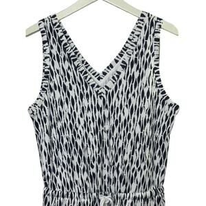 Loft Lou & Grey Black & White Ripple Cozy Cotton V-Neck Romper Women's Small New