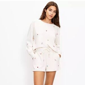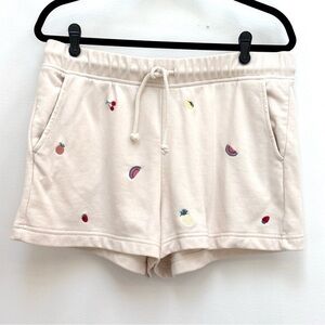 Loft Lou & Grey Embroidered Fruity Cozy Cotton Terry Lounge Shorts Cream Multi L