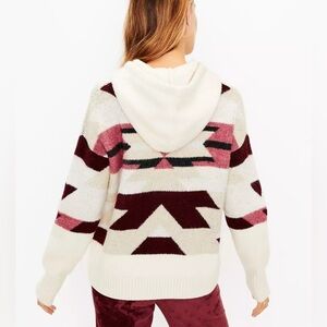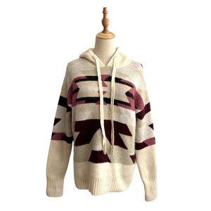 Loft Lou & Grey Slopeside Hoodie Sweater Geometric Aztec Print Size Small in very nice used condition. Splashed with the freshest geo jacquard motif, this super soft sweater cozies up your look - from every angle. It’s so soft and cozy and perfect for Apres ski ⛷️ after hitting the slopes. Pullover styling. Drawstring hood. Long sleeves. Pretty cream color with pink, maroon, black and beige accent colors. Measurements lying flat are approximately 21” inches underarm to underarm and from shoulder to hem approximately 23” inches! Super cute 🤍
