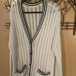 Loft Lou & Grey Tipped Mesh V-Neck Pocket Cardigan- EUC size XL, worn a few times, washed delicate & hung dry. Size tag is removed. This is oversized fit.