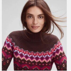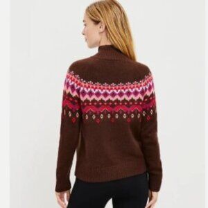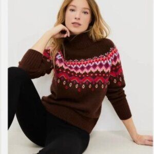 Loft Lou & Grey Women's Large Fair Isle Mock neck Sweater Cuban Coffee