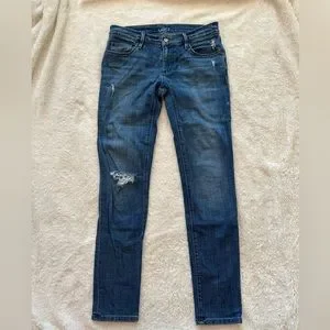 Gently worn, low rise. Not a lot of stretch.