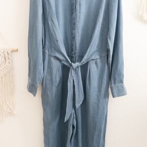 Loft Lyocell Linen Blend Blue Chambray Jumpsuit