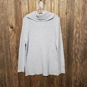 Loft M Tunic Sweater Light Blue Wool Blend Cowl Neck Long Sleeve Ribbed Medium