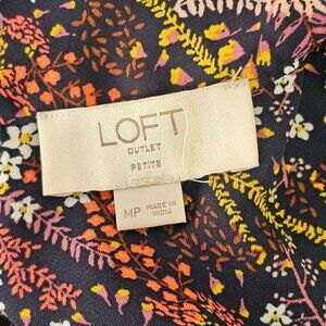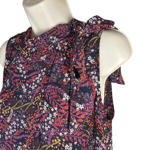 Loft Magenta Ditsy Floral Halter Neck Sleeveless Top Size MP Tie Neck Detail