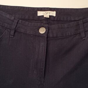Loft Marisa Linen Blend Pants Size 10 Mid Rise Tapered Leg Navy Blue Color
