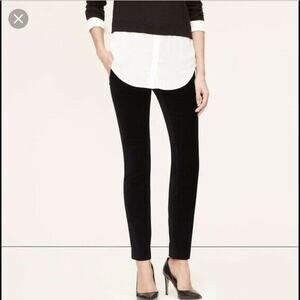 Loft Marisa Skinny Black Velvet Straight Leg Pants Size 6