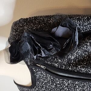 Loft Marled Black Tweed Knit Moto Jacket Sweater Embellished Spring Mobwife